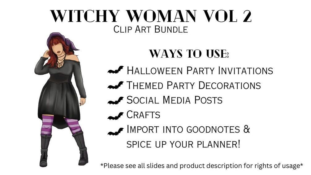 Unveil the enchantment within you and transform your creative projects into mystical masterpieces with my Witchy Woman Volume 2 Clip art Bundle. Embrace the power of imagination and add a hint of gothic allure to your personal endeavors. Please note that this bundle is intended for personal use only and not for commercial purposes.